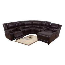 Brown Large Reclining Sectional Couch Set With Pull Out Bed And Compartment Storage + Cup Holders $500Schaumburg, IL