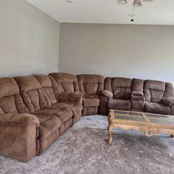 Brown Sectional Reclining Couch Set With Ottoman Storage $500Schaumburg, IL