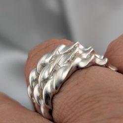 Vintage Sterling Silver LARGE Brutalist Wide Ridged Electroform Statement Ring