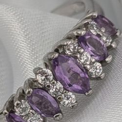925 Marquise Amethyst and Cubic Zirconia Sterling Silver Ring, Stackable Band Ring- Size 11 $48Oak Park, IL