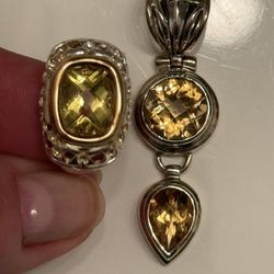 Beautiful 2 Piece Citrine Ring (size 7) & Pendant Set In Sterling Silver .925$399Streamwood, IL