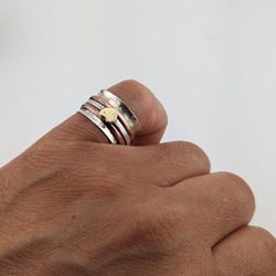 Spinner Ring, 925 Silver, Copper & Brass Band, Handmade spinner ring, Meditation Ring, Statement Ring, Thumb Ring,