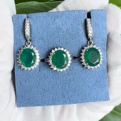Sterling Silver 925 Earrings And Ring Gorgeously Colored Green Chrysoprase ( Chalcedony) With Phianites I$175Plainfield, IL