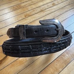 VTG 90s Western Black Leather Woven Braided Men's Belt with Silver Buckle Sz. 38$35Elgin, IL