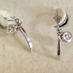BRIGHT STERLING SILVER ROUND CZ CRYSTAL LEVER BACK EAR WIRES EARRINGS $8Yorkville, IL