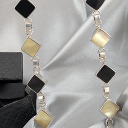 Vintage Sterling Silver 925 Mother of Pearl and Black Onyx Square Link Chain Necklace 47.6g$192Oak Park, IL