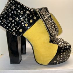 Issue Golden Yellow Velvet Lace Up Booties Platform shoes size 10$60Lombard, IL
