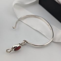 6" Red Jasper Sterling Silver Marked 925 Mexico Bangle Bracelet With Latch Vintage
