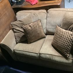 Love seat thick cushioned with fat arm rests no rips or stains, recently cleaned comes with pillows Approximately 64” wide 34” tall from back of couc$65Joliet, IL