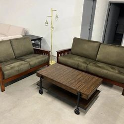 Mission-Style Wood Sofa And Loveseat Set Table (Separate )in Olive Microfiber (New)$450Chicago, IL