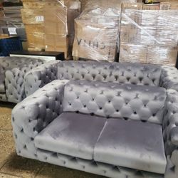 Beautiful 3 Pc Modern Gray Velvet Sofa Set (New)$999Bensenville, IL