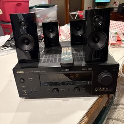 Vintage Yamaha HTR 586 7.1 channel natural sound AV receiver w/ remote works great + 4 Samsung mini speakers $125Glen Ellyn, IL