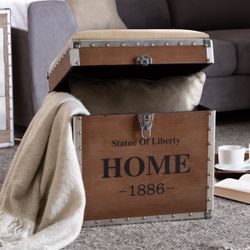 New Upholstered Wood Industrial Light Beige Fabric Storage Trunk Ottoman Side Table - Excellent Reviews!$50Schaumburg, IL