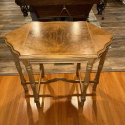 Antique 6 legged parlor table. Beautiful entry way table w/square inlays vintage Tiger Oak top French style spindle legs Excellent condition $98Glen Ellyn, IL