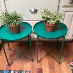 Indoor /outdoor green metal tables / plant stands ( trays removable) $45Downers Grove, IL