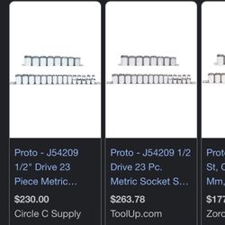 Proto 1/2 Drive 23 Pc Metric Socket$80Chicago, IL