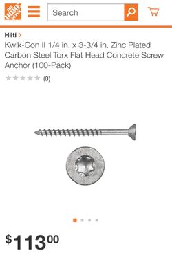 Hilti Kwik Con II 1/4” x 3 3/4” Zinc Plated Carbon Steel Torx Concrete Screw Anchor (100 ea)$75Schaumburg, IL