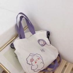 White And Purple Cartoon Print Crossbody Bag Hand-Washable Polyester Lining$9Chicago, IL