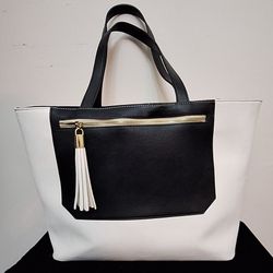 NEIMAN MARCUS VEGAN LEATHER BLACK & WHITE TOTE$35Stickney, IL