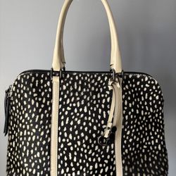 Asia Bellucci Italian Calf Hair Leather Tote Animal print Dual Zip Blk/crm $50Tinley Park, IL