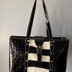 Arcadia Logo Embossed Animal Print Calf Hair Patent Leather Italian Tote$50Tinley Park, IL