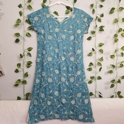 Womens Unbranded Kurta Floral Embroidered Vneck Blue Sz 36 Med Lightweight $19Elmhurst, IL