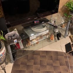 Black glass tv stand ( holds up to 60” tv)$90Park Forest, IL