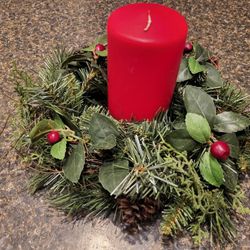 candle artificial greenery, large with red pillar candle$6Janesville, WI