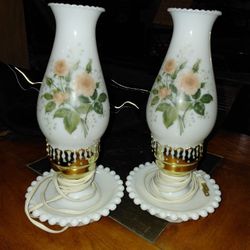 MILK GLASS LAMPS…Set of 2…Floral Glass Hurricane Shades…Milk Glass Bases with Jewelry Trays$60Rockford, IL