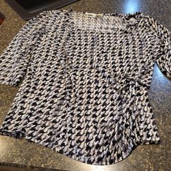 Women 2XL Worthington Woman Stretch black and white checkered 3/4 sleeve blouse Lot 52$3Janesville, WI