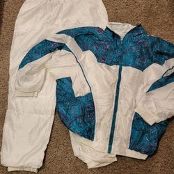 Women XL Crossroads 2pc white / teal paisley retro running suit Lot 102$3Janesville, WI