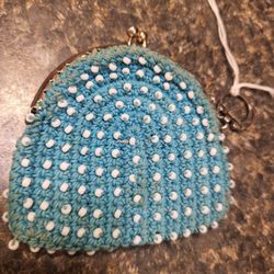 Coin purse teal with beaded white polka dots$3Janesville, WI