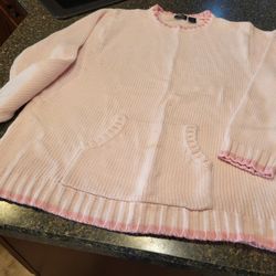 Women 22/24 (3XL) Baileys Point BP pink crewneck sweater, pink trim Lot 47$3Janesville, WI