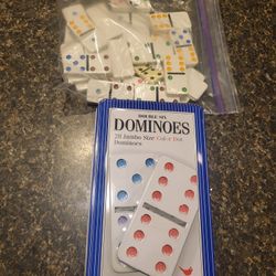 Double Six white tile dominoes - metal case plus extra ziploc bag$5Janesville, WI