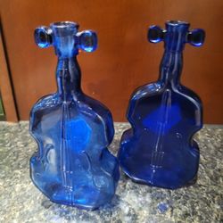 violin shaped cobalt blue glass bottles