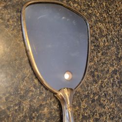 Hand Mirror vintage approx 12" length metal gold colored $6Janesville, WI