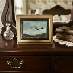 Landscape with Birds Flying Painting Hand painted in pale tones to give this piece a vintage vibe. Frame fit is 5x7 with the frame itself being metal$30Dekalb, IL