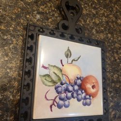 trivet fruit and pear black metal and porcelain$4Janesville, WI