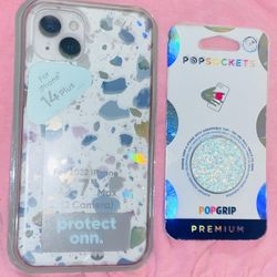 2 SET/⚪️🧁🪩✨IPHONE📱14 PLUS WHITE⚪️SILVER🪩MARBLE DESIGNED CASE &⚪️🍦🪩WHITE SEQUINED POP SOCKET🪩✨$7Rochelle, IL