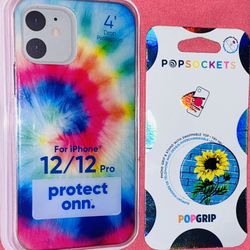 2 SET/🟢🦋🟣📱💕🔵🟡✨IPHONE 12/12 PRO CASE &🦋🌻⚪️🟢✨BLUE🦋🔵W: DAISY 🌻✨DESIGNED POP SOCKET$7Rochelle, IL