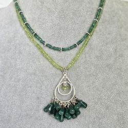 Vintage Unique Sterling Silver Peridot and Green Onyx Two Strand Layered Pendant Necklace $45Dekalb, IL