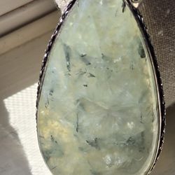 Vintage Sterling Silver Prehnite Gemstone Statement Pendant Necklace $45Dekalb, IL