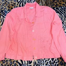 WOMENS🌼🌷CHRISTOPHER&BANKS🌷🌼PEACH🍑PINK🌸DENIM SIZE LARGE LONG SLEEVE SEQUINED✨BUTTON UP JACKET$16Byron, IL
