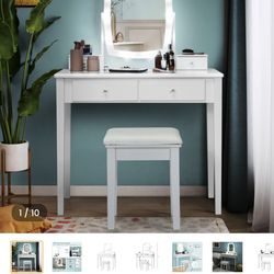 White Makeup Vanity Desk with Mirror, Lights, Outlets, and Chair! - NEW$100Clarendon Hills, IL