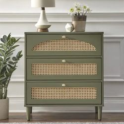 New Boho 3 Drawer Chest with Natural Cane Olive Green$175Bensenville, IL
