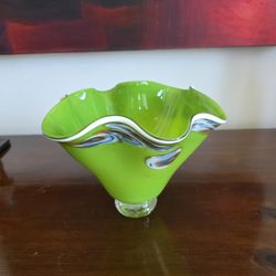 Hand-blown Art Glass Vase with Ruffled Rim in Vibrant Lime Green$85Willowbrook, IL