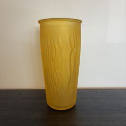 Gorgeous Mustard Yellow Color Frosted Textured Glass Flower 10" Vase Preowned$8Worth, IL