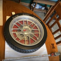 Vintage Orange County Choppers tire wall clock approximately 14” round, thick rubber tire wraps around unique clock that has wrench for hand. Approxi$40Joliet, IL