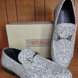 Bravo! Men Dress Shoe Prom Loafer Modern Metallic silvee Glitter Sz 7$30Plainfield, IL
