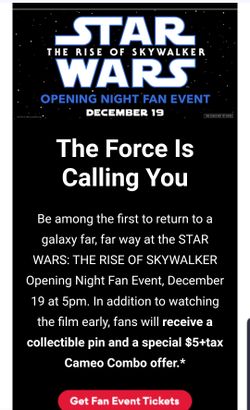 star wars fan event ticket w pin 12/19 @amc village crossing$60Chicago, IL